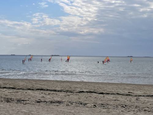 Obwohl wir das Revier vor der Haustür haben, gab es bislang noch kein Kursangebot "Windsurfing" an der EFS. Lediglich Windsurfing AGs wurden von den Surfschulen für die Insulaner-Schülerinnen und Schüler angeboten. Dies hat sich in diesem Schuljahr geändert. Da die EFS einen neuen Sportkollegen (Tilo Eber) gewinnen konnte, der über eine Lehrbefähigung und weitreichende Freestyle-Weltcuperfahrung verfügt, gibt es nun auch Windsurfing in der Oberstufe. Windsurfing Föhr (Pitschis) war sofort bereit, das Angebot mit Material zu unterstützen. Die Schülerinnen und Schüler nahmen das neue Angebot sehr gut an.
