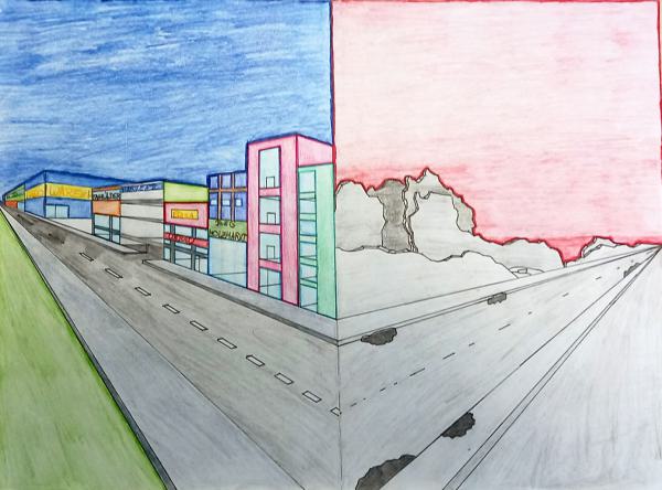 (9) Thema: Gestaltung eines Straßenzuges mit zwei Perspektiven