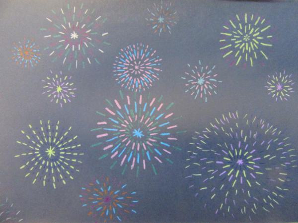 (5) Thema: Feuerwerk-Buntstiftzeichnung